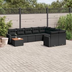 Salon de jardin 10 pcs avec coussins noir resine tressee