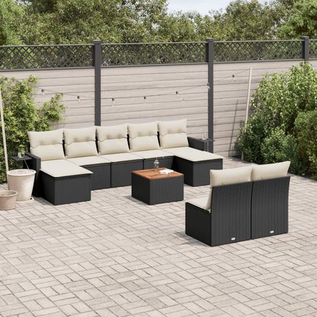 Salon de jardin 10 pcs avec coussins noir resine tressee