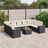 Salon de jardin 10 pcs avec coussins noir resine tressee