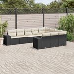 Salon de jardin 10 pcs avec coussins noir resine tressee