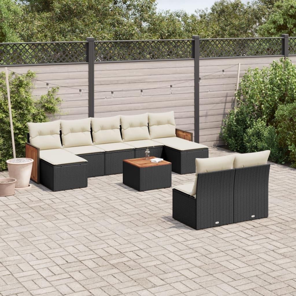 Salon de jardin 10 pcs avec coussins noir resine tressee