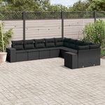 Salon de jardin 10 pcs avec coussins noir resine tressee