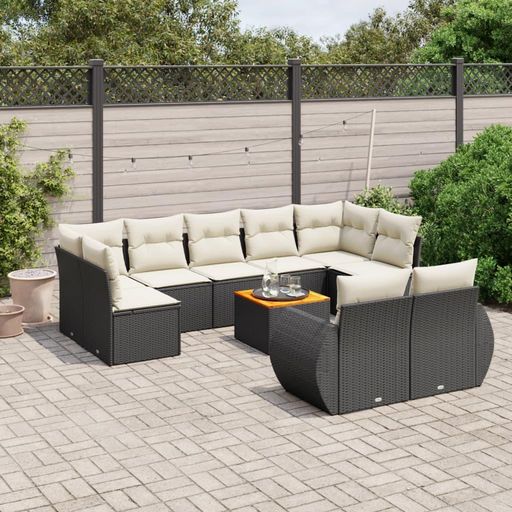 Salon de jardin 10 pcs avec coussins noir resine tressee