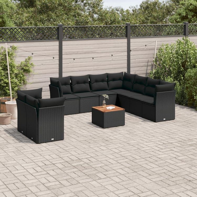 Salon de jardin 10 pcs avec coussins noir resine tressee