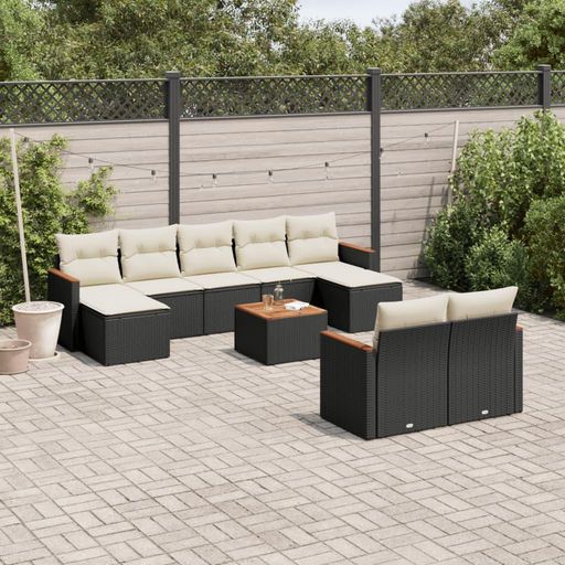 Salon de jardin 10 pcs avec coussins noir resine tressee