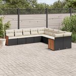 Salon de jardin 10 pcs avec coussins noir resine tressee