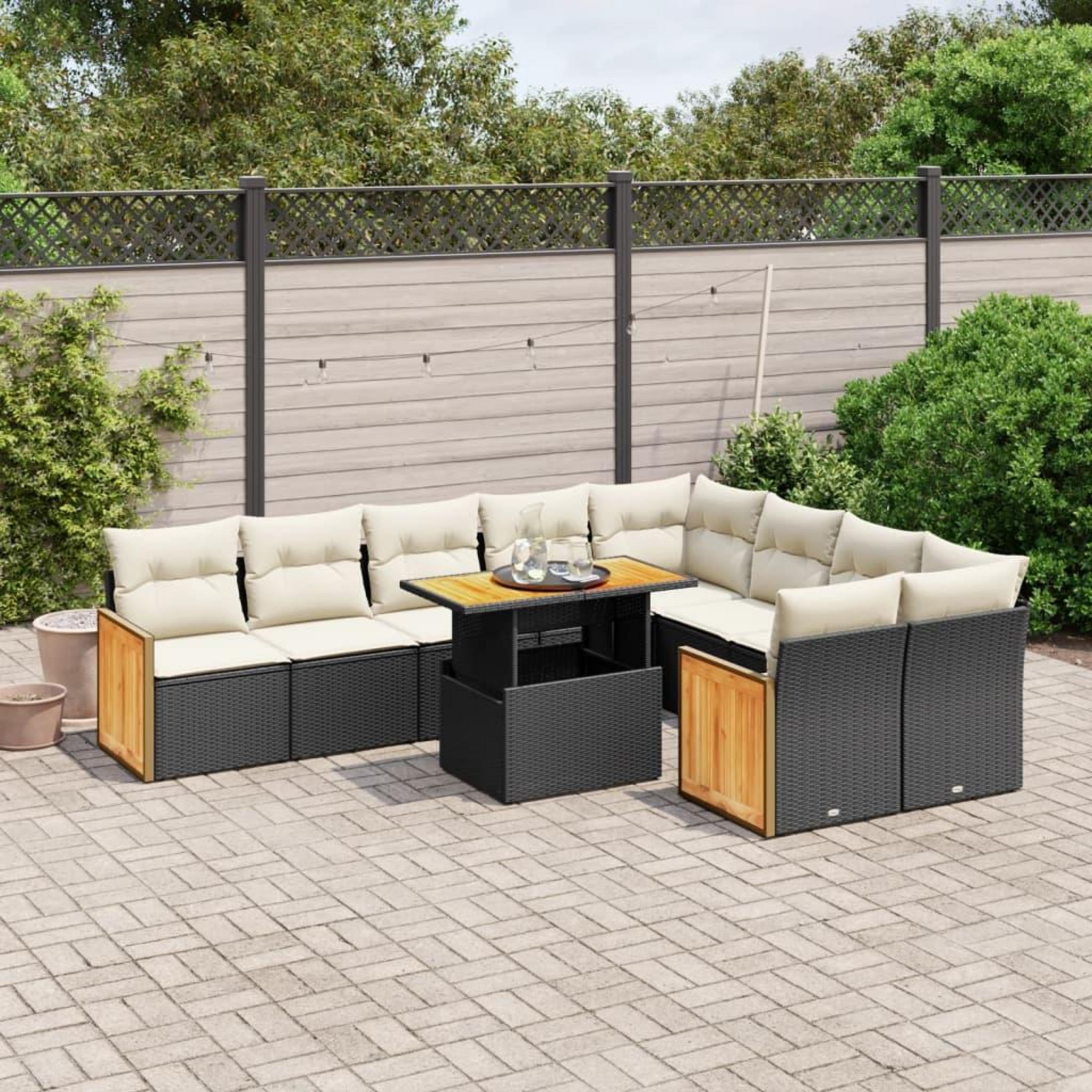Salon de jardin 10 pcs avec coussins noir resine tressee