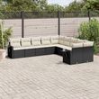 Salon de jardin 10 pcs avec coussins noir resine tressee