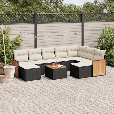 Salon de jardin 10 pcs avec coussins noir resine tressee