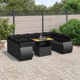 Salon de jardin 10 pcs avec coussins noir resine tressee