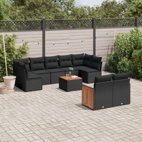 Salon de jardin 10 pcs avec coussins noir resine tressee