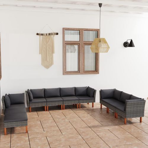 Salon de jardin 10 pcs avec coussins Resine tressee Gris