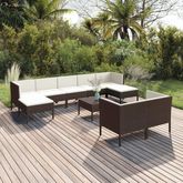 Salon de jardin 10 pcs avec coussins Resine tressee Marron