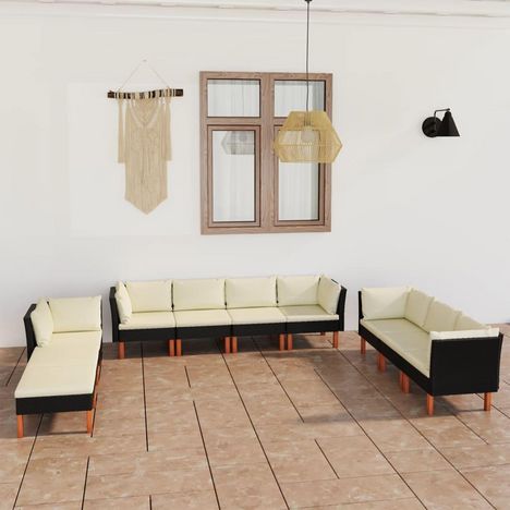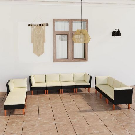 Salon de jardin 10 pcs avec coussins Resine tressee Noir