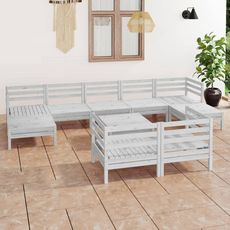 Salon de jardin 10 pcs Blanc Bois de pin massif