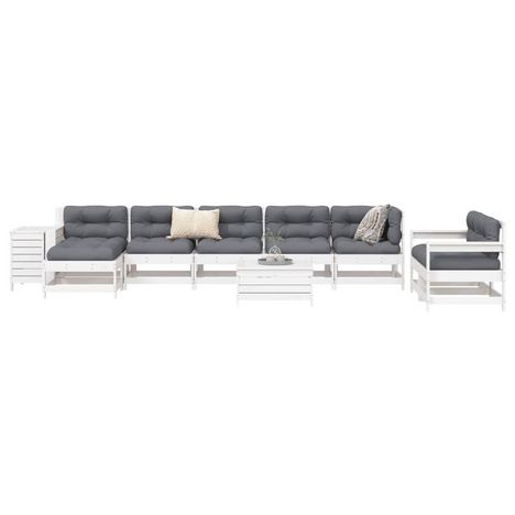 Salon de jardin 10 pcs blanc bois de pin massif