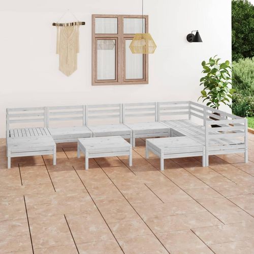 Salon de jardin 10 pcs Bois de pin massif Blanc