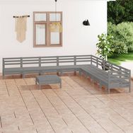 Salon de jardin 10 pcs Bois de pin massif Gris