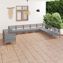 Salon de jardin 10 pcs Bois de pin massif Gris