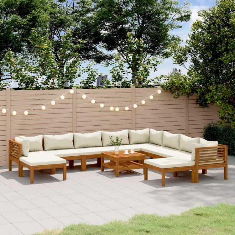 Salon de jardin 11 pcs avec coussin creme Bois d'acacia solide