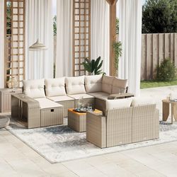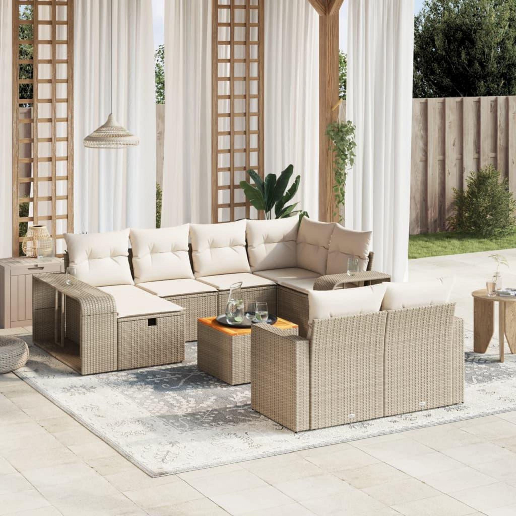 Salon de jardin 11 pcs avec coussins beige resine tressee