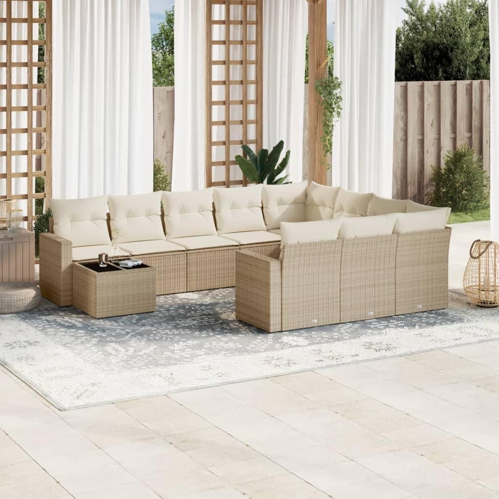 Salon de jardin 11 pcs avec coussins beige resine tressee