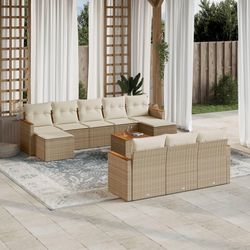 Salon de jardin 11 pcs avec coussins beige resine tressee