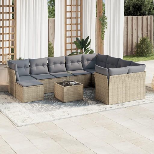 Salon de jardin 11 pcs avec coussins beige resine tressee