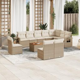 Salon de jardin 11 pcs avec coussins beige resine tressee