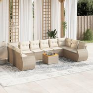 Salon de jardin 11 pcs avec coussins beige resine tressee