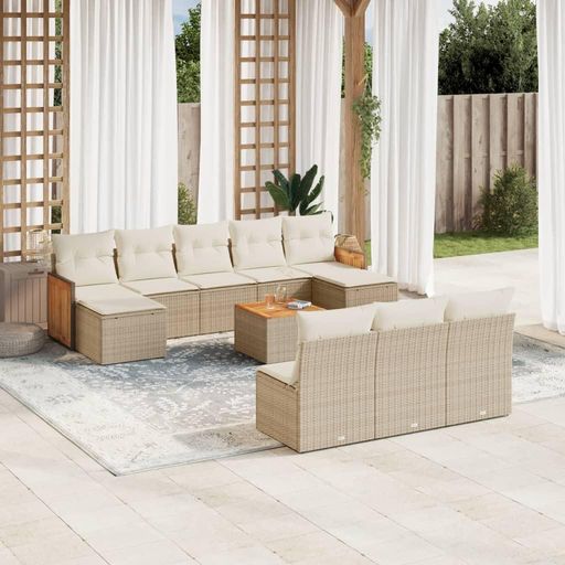 Salon de jardin 11 pcs avec coussins beige resine tressee