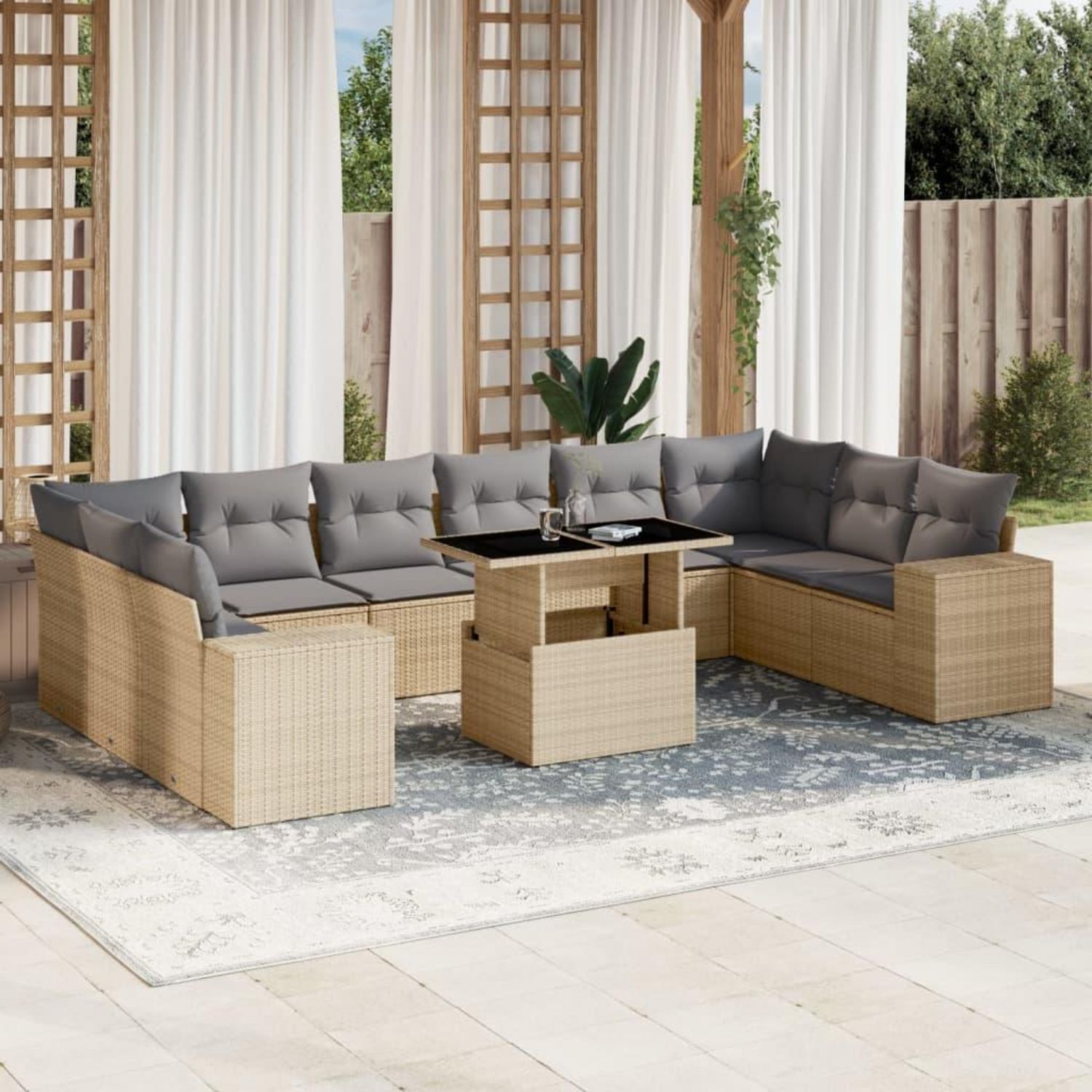 Salon de jardin 11 pcs avec coussins beige resine tressee