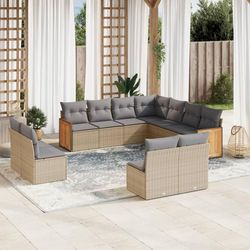 Salon de jardin 11 pcs avec coussins beige resine tressee