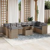 Salon de jardin 11 pcs avec coussins beige resine tressee