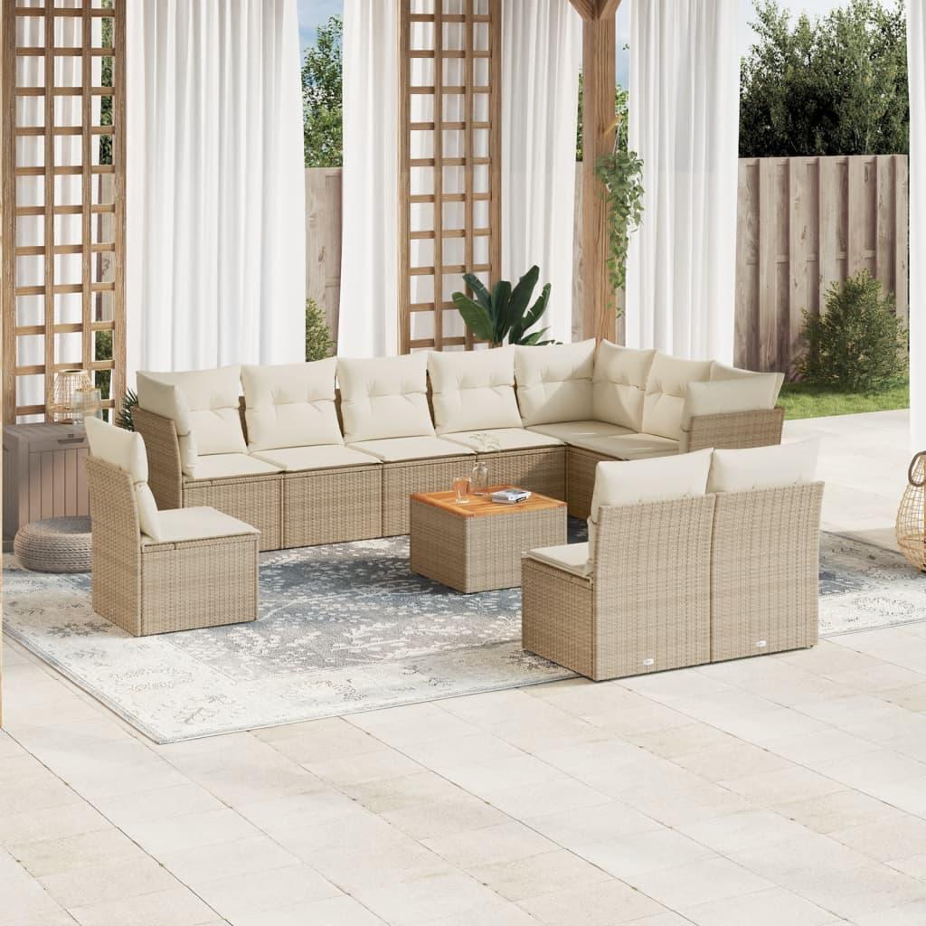 Salon de jardin 11 pcs avec coussins beige resine tressee