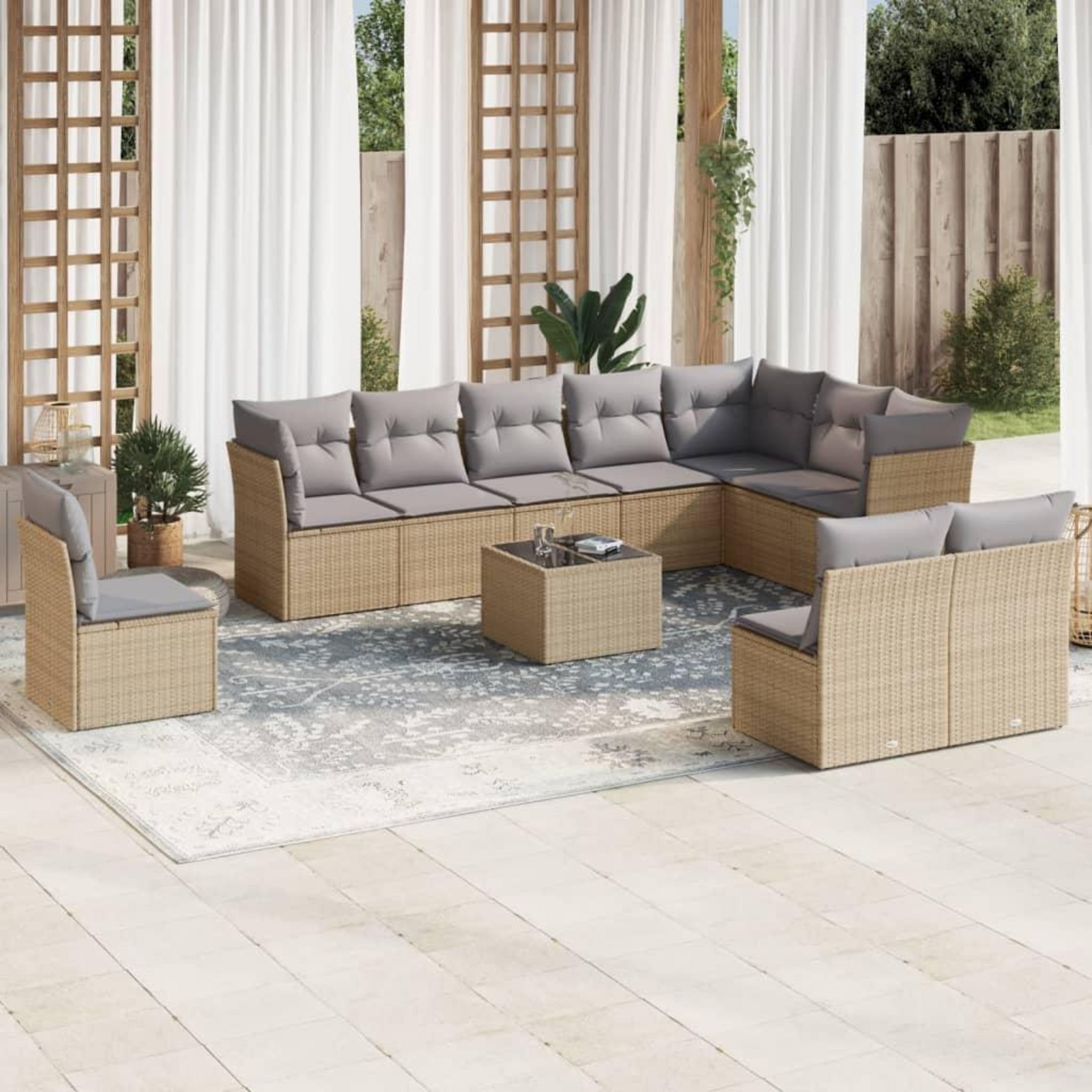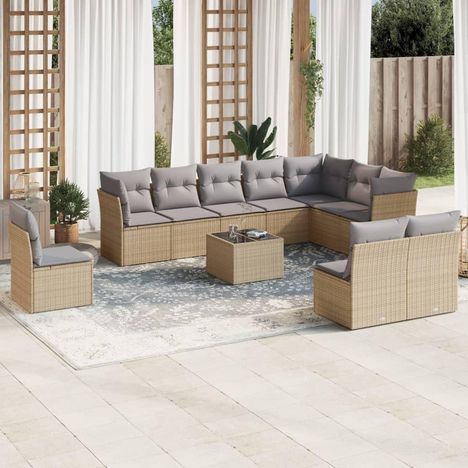 Salon de jardin 11 pcs avec coussins beige resine tressee