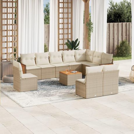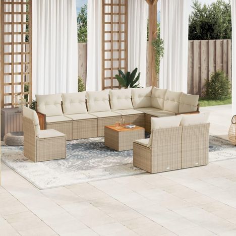 Salon de jardin 11 pcs avec coussins beige resine tressee
