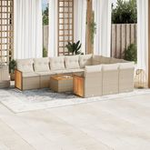 Salon de jardin 11 pcs avec coussins beige resine tressee