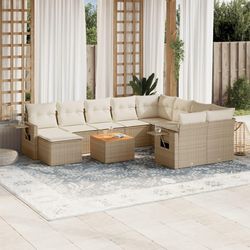 Salon de jardin 11 pcs avec coussins beige resine tressee