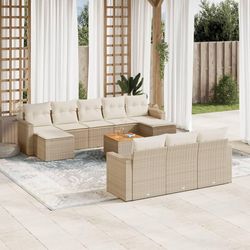 Salon de jardin 11 pcs avec coussins beige resine tressee