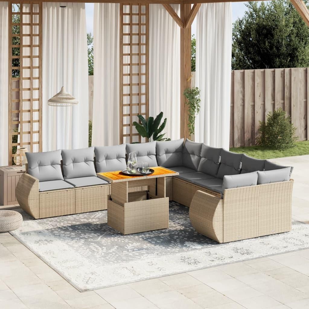 Salon de jardin 11 pcs avec coussins beige resine tressee