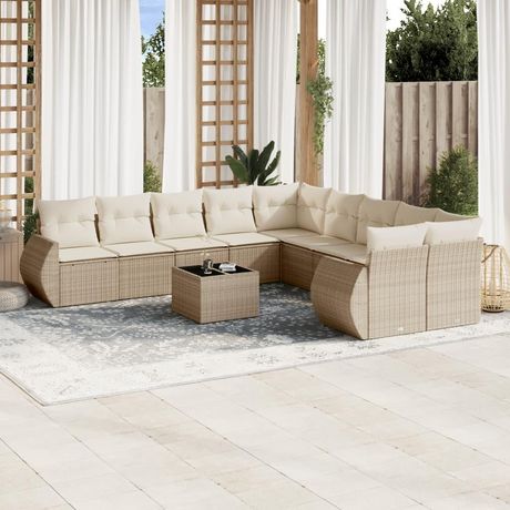 Salon de jardin 11 pcs avec coussins beige resine tressee