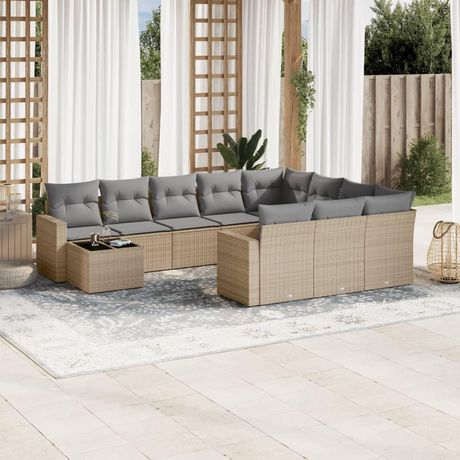 Salon de jardin 11 pcs avec coussins beige resine tressee