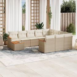 Salon de jardin 11 pcs avec coussins beige resine tressee