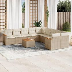 Salon de jardin 11 pcs avec coussins beige resine tressee