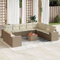 Salon de jardin 11 pcs avec coussins beige resine tressee