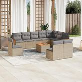 Salon de jardin 11 pcs avec coussins beige resine tressee