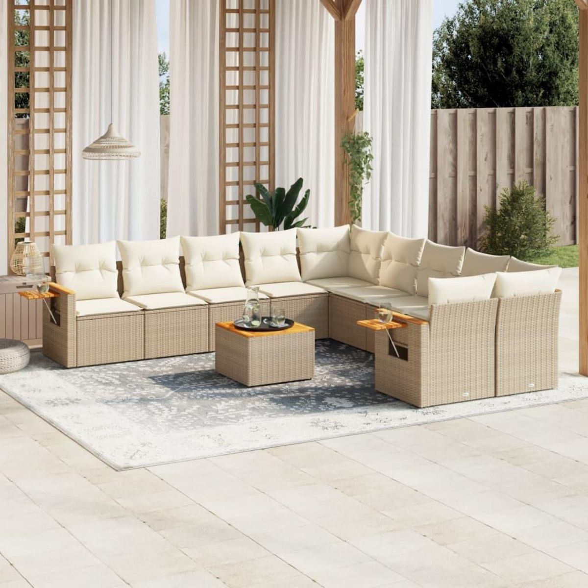 Salon de jardin 11 pcs avec coussins beige resine tressee