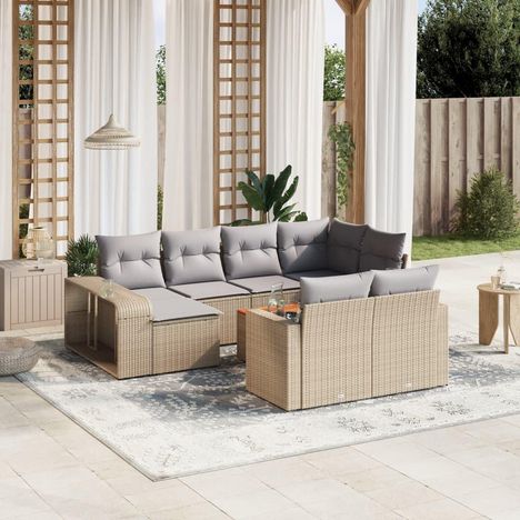 Salon de jardin 11 pcs avec coussins beige resine tressee