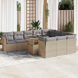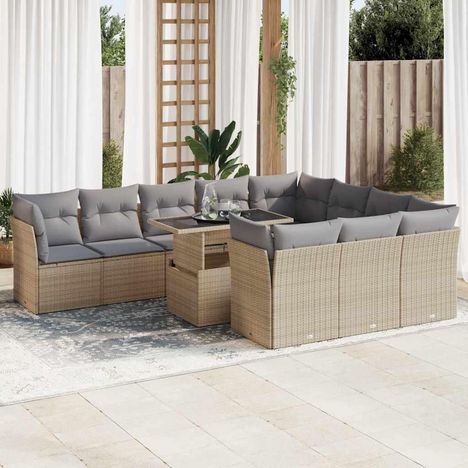 Salon de jardin 11 pcs avec coussins beige resine tressee